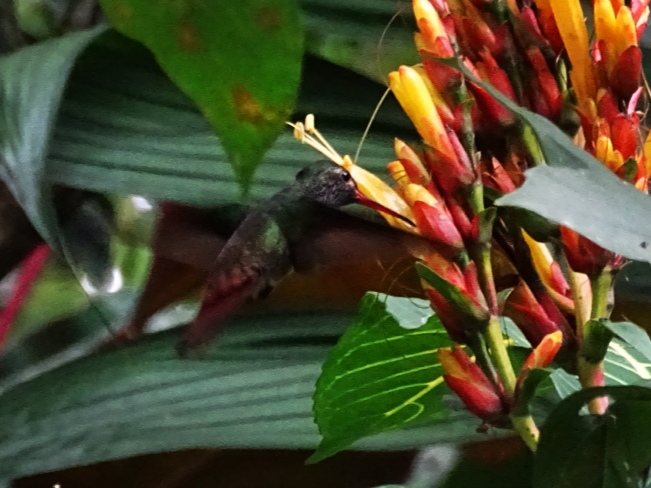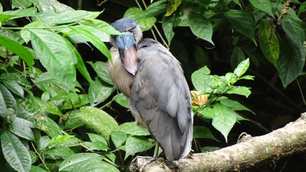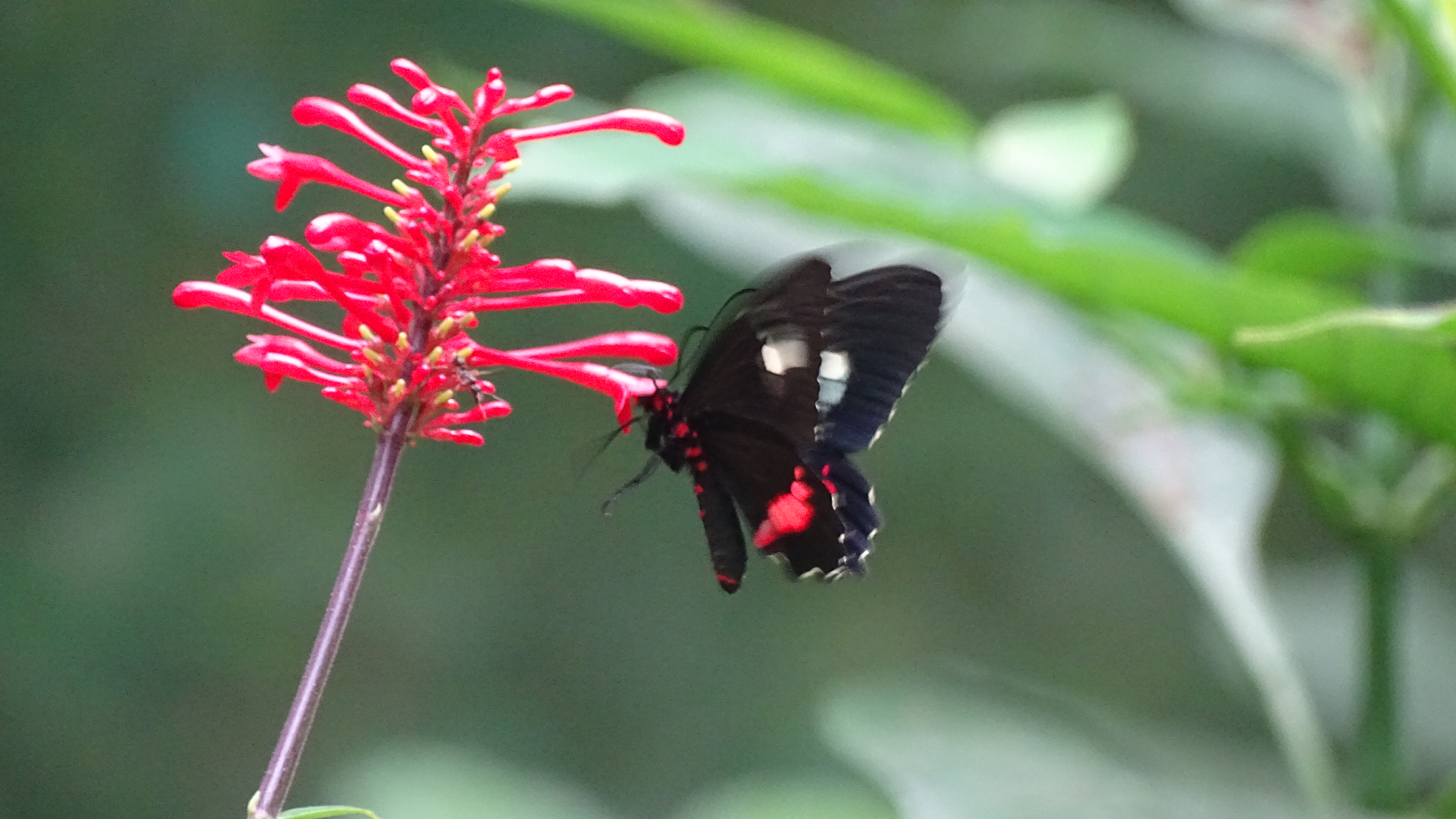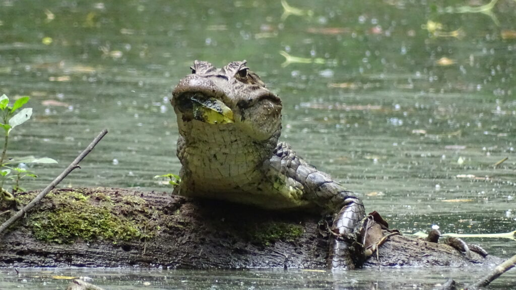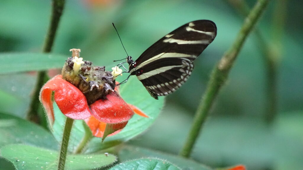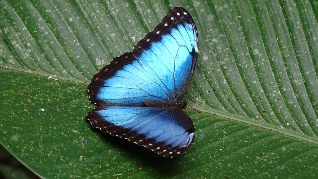 Da sich der Vulkan auch am nächsten Tag nicht mehr Blicken ließ, entschieden wir uns gegen einen Wanderung. Stattdessen wollten wir die Tierwelt Costa Rica weiter entdecken, die es uns in Boca Tapada bereits angetan hatte. So entschieden wir uns das nahegelegene Biotop „Ecocentro Danaus“ zu besuchen. Besonders erstaunlich war, dass dieses ein reiner Sekundärwald ist. Sprich der Wald war zuvor komplett abgeholzt und vor 30 Jahren wurde er erst wieder neu gepflanzt. Es war sehr beeindruckend zu sehen was in dieser Zeit der Natur zurück gegeben werden kann. So ist dies heute mit hochgewachsenen Bäumen das Zuhause von Vögeln, Kolibirs, Brüllaffen, Nasenbären, Kaimanen, Wasserschildkröten und vielen weiteren Tieren. Dort konnten wir unser erstes Faultier in freier Wildbahn sichten und dann auch noch gleich ein Muttertier mit Baby. Glücklicherweise entschieden wir uns bei unserem Besuch dazu, einen Rundgang mit Guide zu nehmen. Das hat sich wirklich gelohnt, denn ansonsten hätten wir bestimmt die meisten Tiere gar nicht gesichtet, da sich diese sehr gut versteckt oder hoch oben in den Bäumen aufhielten. Beim Eintritt ist ausserdem ein Besuch des zugehörigen Schmetterlingsgaren inklusive. Hier tummeln sich zahlreiche bunte Schmetterlinge. Ein besonderes Highlight war, dass Ronja einen frisch geschlüpft Schmetterling in den Garten tragen durfte.