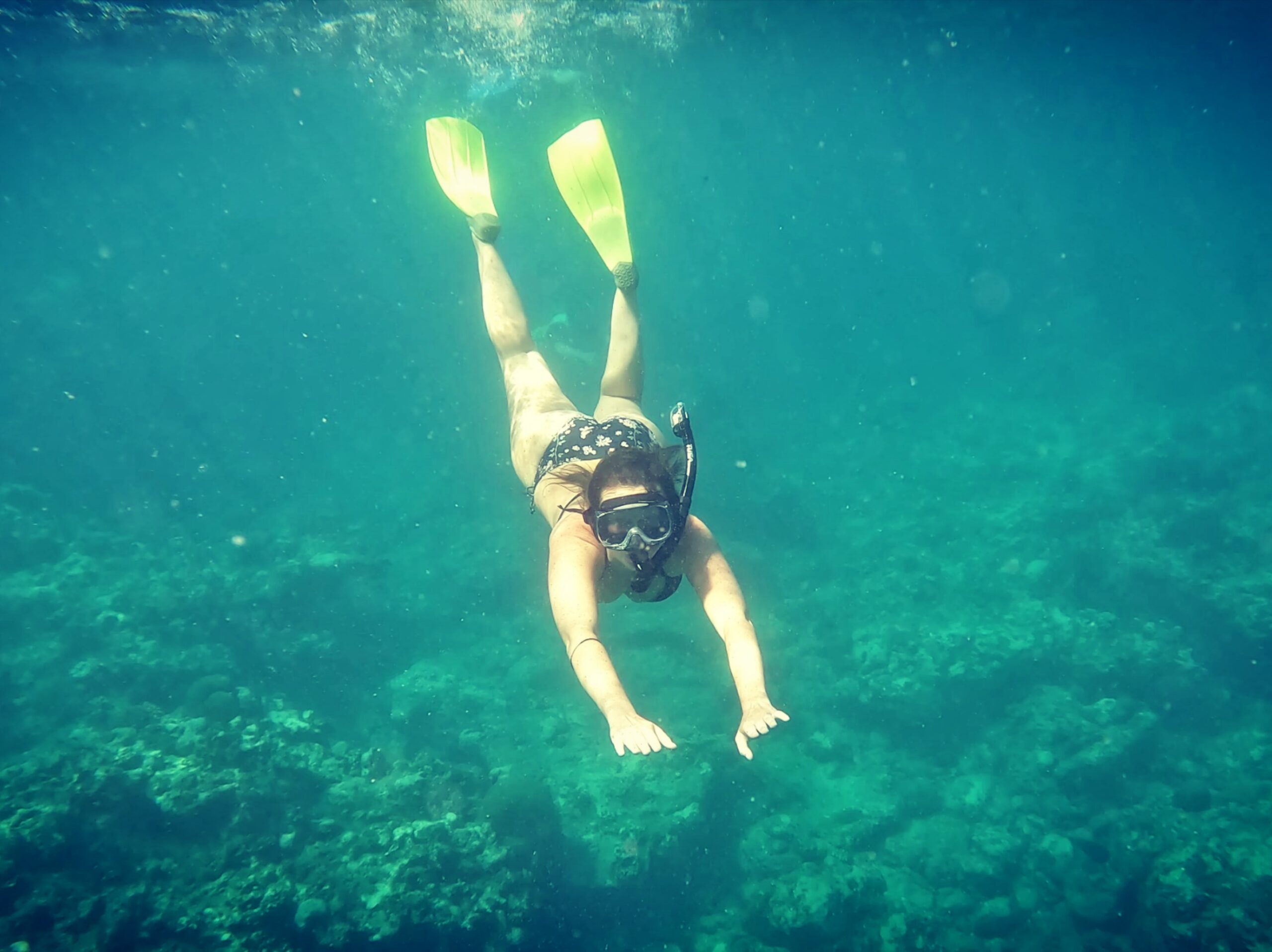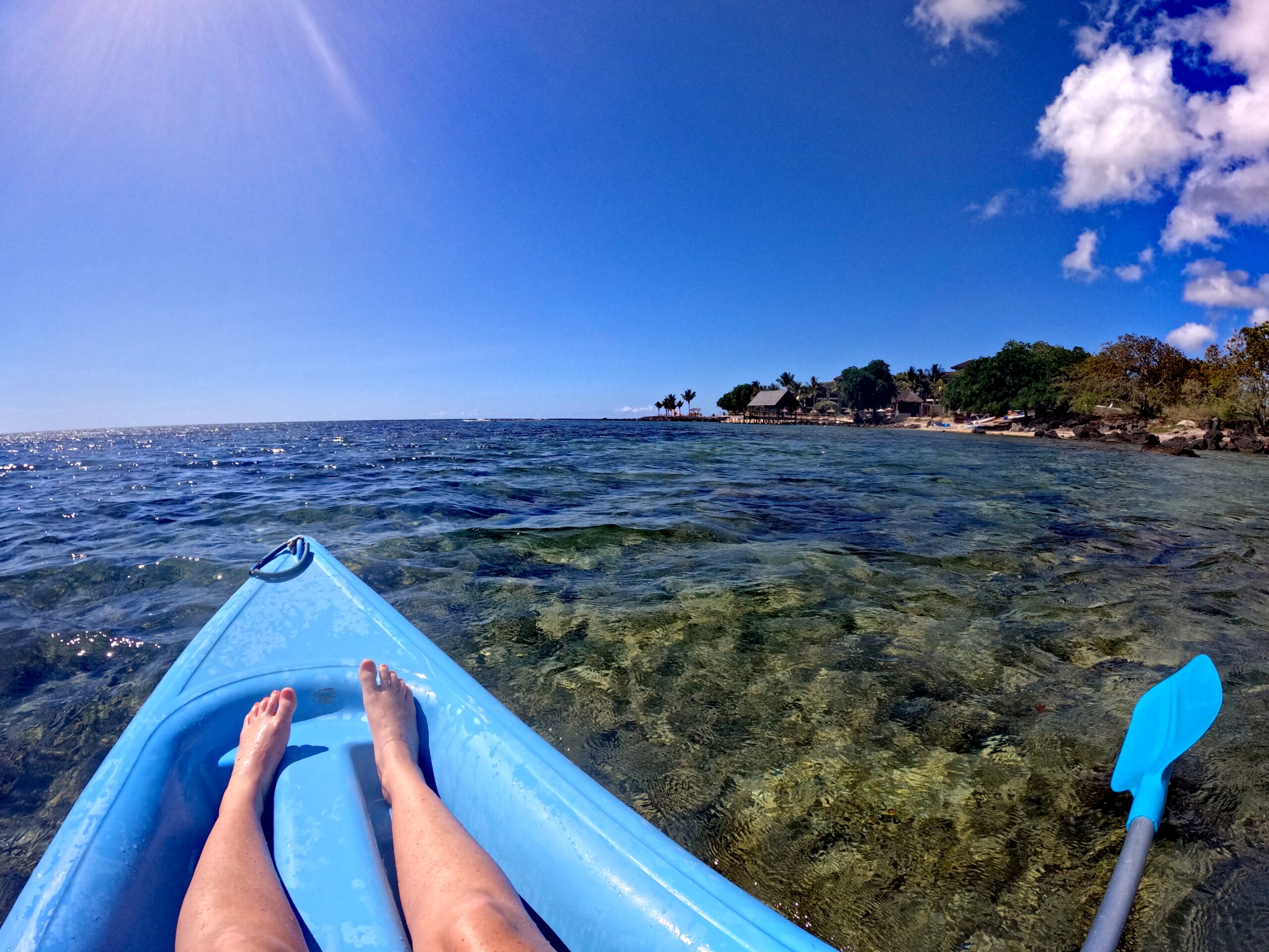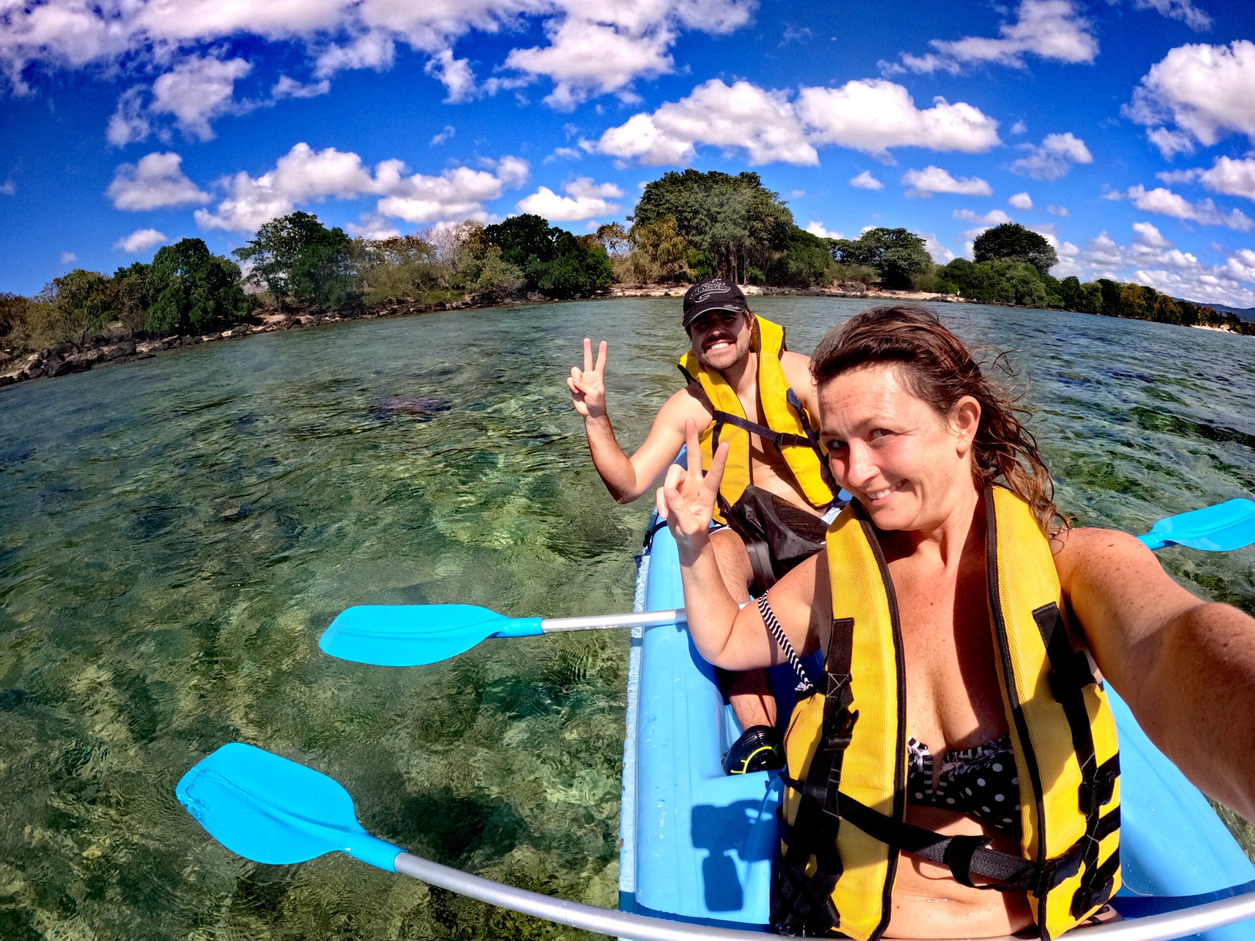 Frisch gestärkt vom Frühstück entschieden wir uns dazu, an einer Schnorchel-Tour teilzunehmen. Diese Tour sowie ein Verleih von Tretbooten, Kaykaks und Windsurfbrettern stehen den Hotelgästen hier übrigens kostenlos zur Verfügung. Da die nächste Tour jedoch erst Nachmittags angesetzt war ging es erst einmal Kayak fahren.