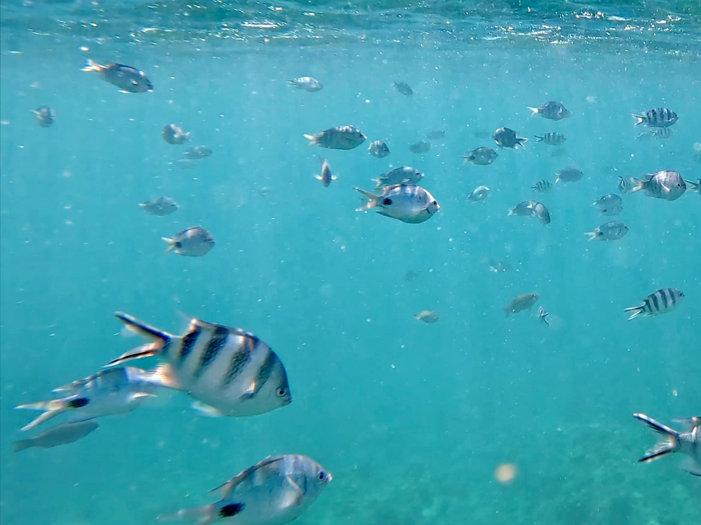 Um 14 Uhr startete dann unserer Schnorchel-Tour in einem Boot mit Glasboden.