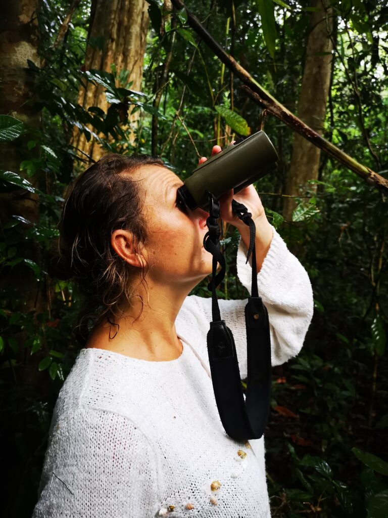 Etwas spannender zu werden versprach der „Wild Gibbon Trek“, der zu einem der Highlights in Cát Tiên gehört. Dabei handelt es sich um eine knapp vierstündige Wanderung, auf der man Gibbons bei Morgengesang in den Bäumen beobachten kann. Entsprechend früh fängt der Ausflug an, denn der Treffpunkt mit unserem Ranger am nächsten Morgen war um 04:30 angesetzt. Da wir zu dem Treffpunkt noch mit dem Boot auf die andere Seite übersetzen mussten klingelte unser Wecker bereits vor 4 Uhr und man kann die Motivation zu diesem Zeitpunkt in Ronja’s Gesicht sehr gut erkennen.