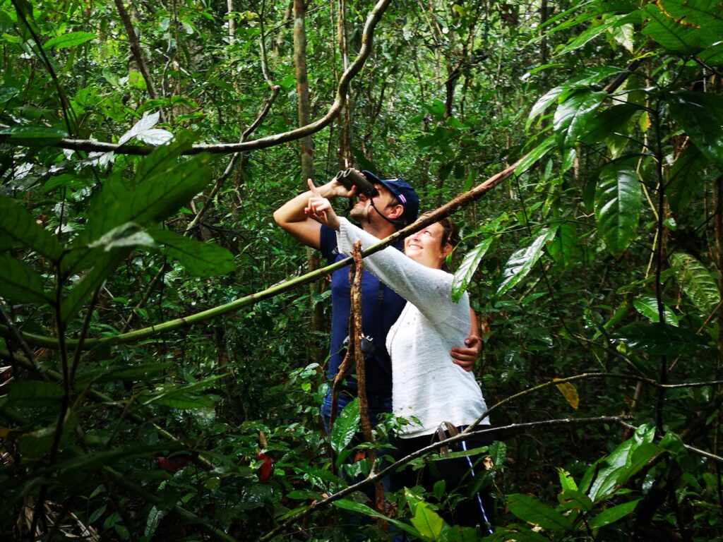 Fasziniert von unseren Beobachtungen machten wir uns wieder auf den Rückweg. Nach einer Weile begann sich das Dickicht des Dschungels zu lichten, bis wir letztendlich vertraute Trampelpfade vorfanden. Kurz drauf kamen wir an dem großen Baum vorbei, an dem wir zuvor angewiesen wurden einen Moment zu warten. Wir machten uns zurück an den Bootsanleger und trafen unterwegs noch ein paar Eichhörnchen an. Am Boot angekommen verabschiedeten wir uns von unserem Ranger und dankten ihm für dieses eindrucksvolle und aufregende Erlebnis.