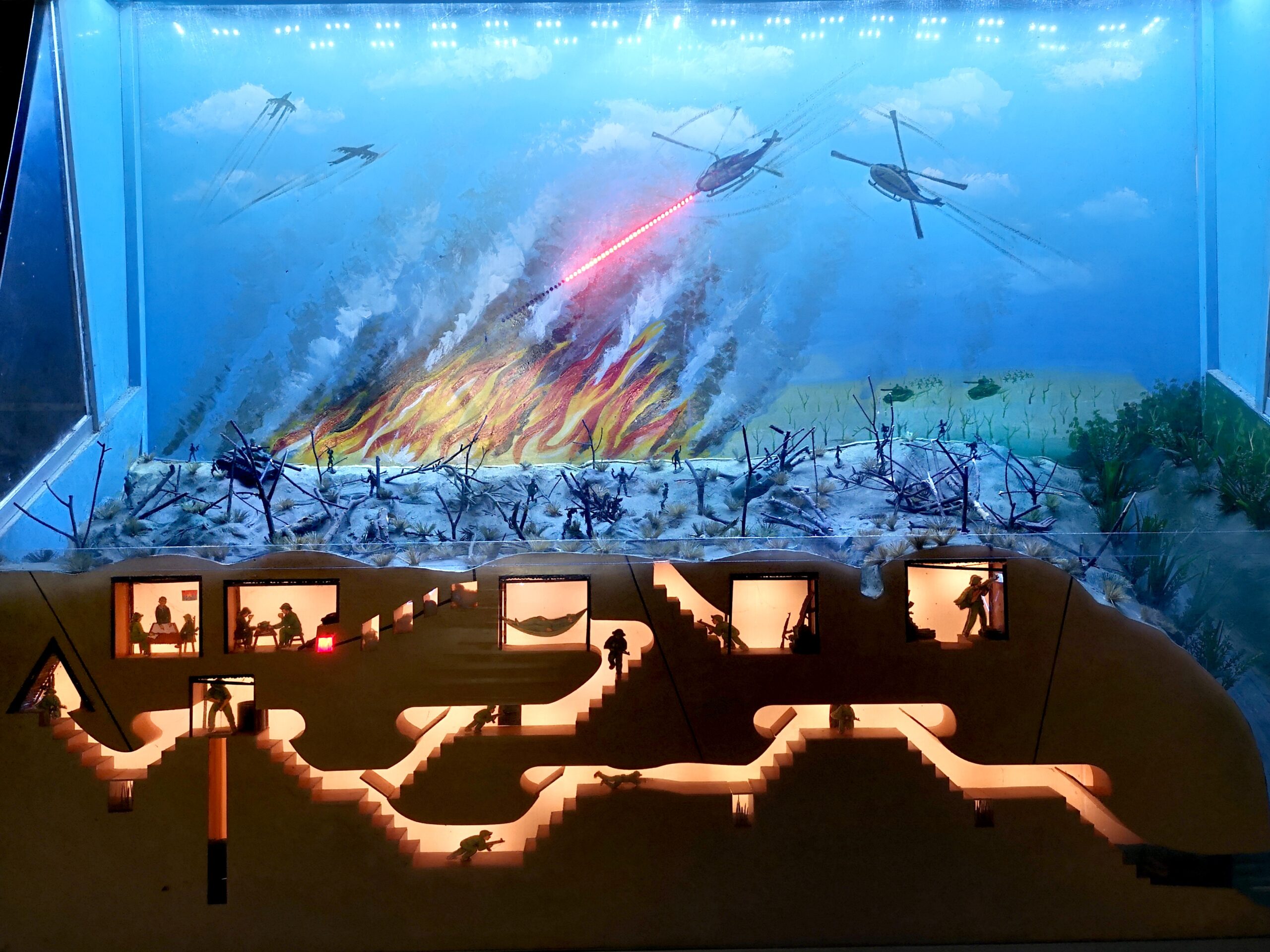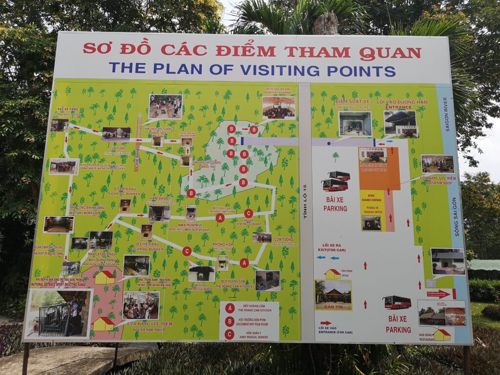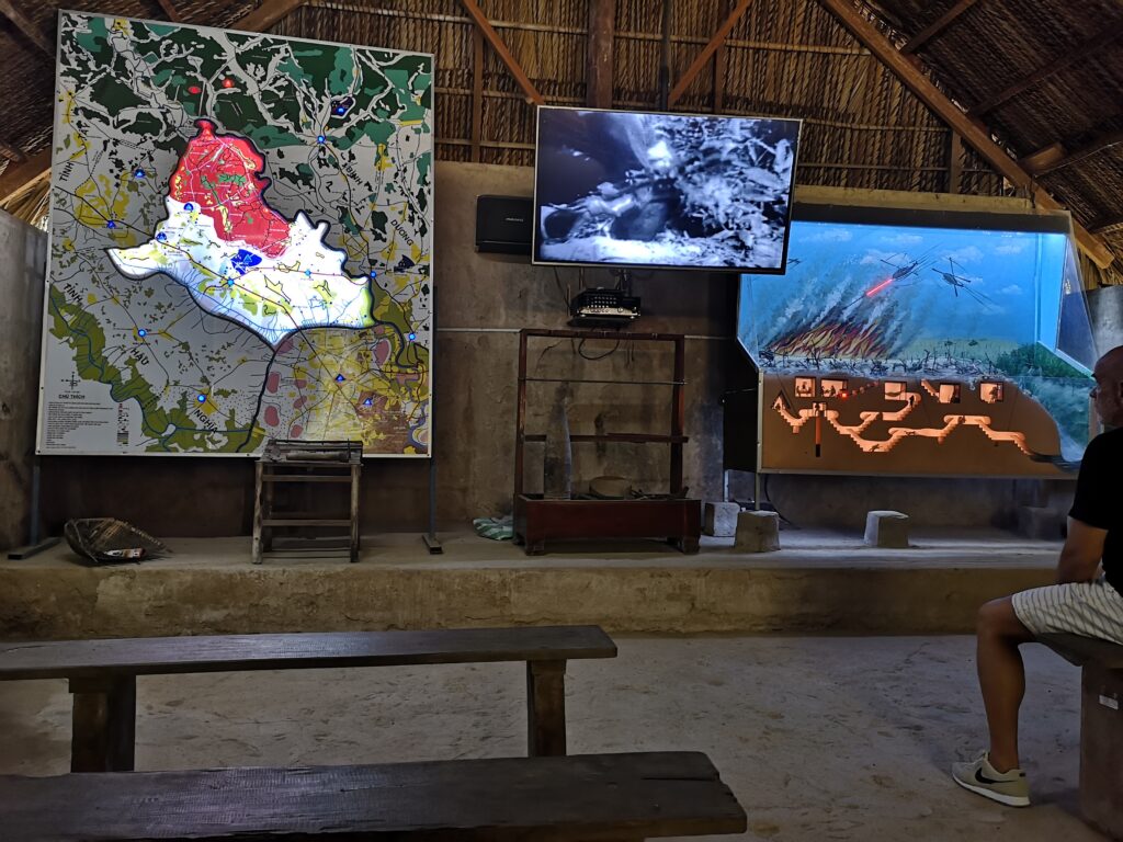 Der Eingang führt durch ein Museum, in dem man mehr über die Geschichte des Krieges und die Rolle, die die Tunnel dabei spielten, erfahren kann. Hier werden Fotos, Waffen und andere Gegenstände ausgestellt, die einst von den Vietcong verwendet wurden. Anschließend bekommt man in einer alten Bunkeranlage auf einem Fernseher eine kurze Dokumentation gezeigt. Außerdem kann man sich in einem Schaukasten den Aufbau der Tunnelanlage etwas näher betrachten.