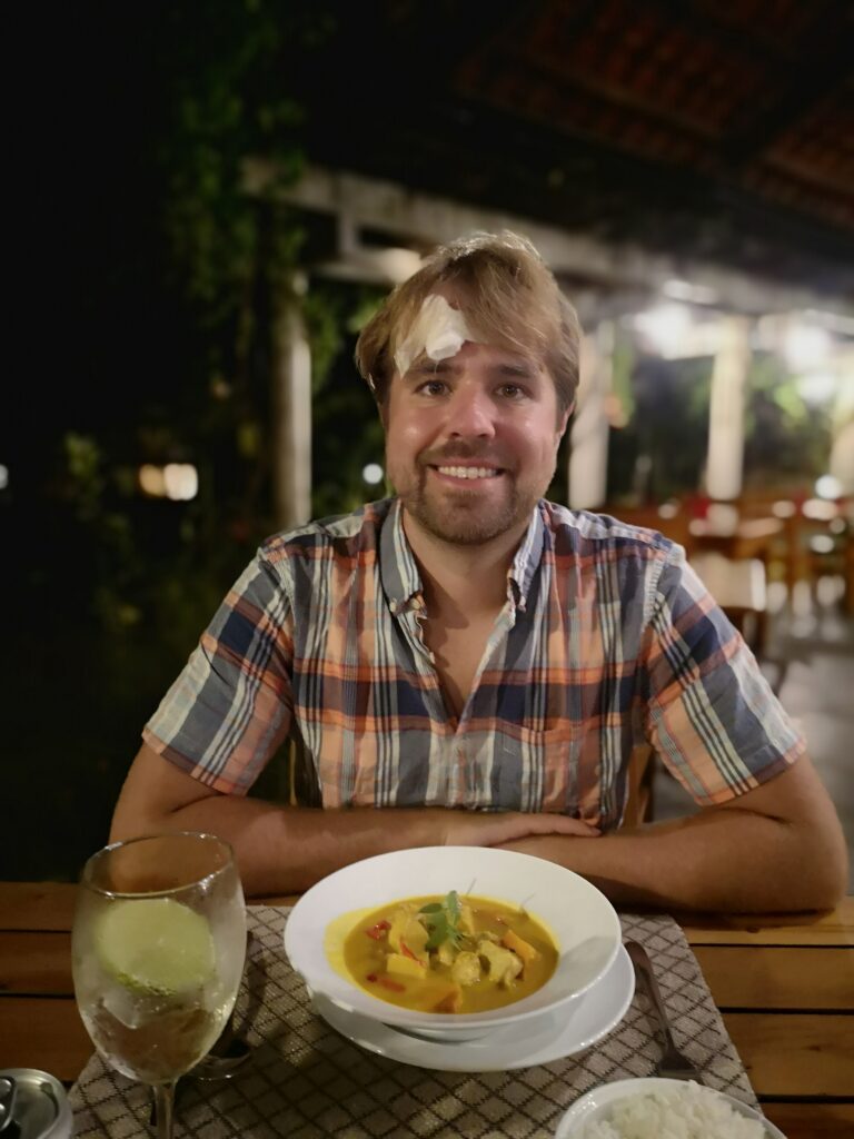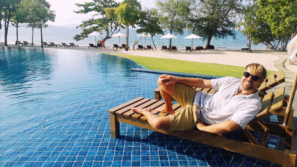 Einen Tag früher als geplant kamen wir in Phú Quốc an, dem letzten Ziel unserer Reise. Unsere Unterkunft, das „Green Bay Resort“, war ruhig gelegen und verfügte über eine sehr gepflegte Hotelanlage mit Restaurant und eigenem Strand. Das Hotel schien erst vor kurzem wiedereröffnet worden zu sein, daher war die Anzahl der Gäste überschaubar. An manchen Tagen hatten wir die Anlage fast für uns alleine. Der perfekte Ort also, um sich zu entspannen, die Aufregung um meine Verletzung zu vergessen und einfach mal abzuschalten. So verbrachten wir die ersten Tage auf der Insel ganz entspannt am Strand und am Pool. Der Strand war sehr schön und wurde mehrmals am Tag gesäubert, was leider wegen des angeschwemmten Mülls auch notwendig war.