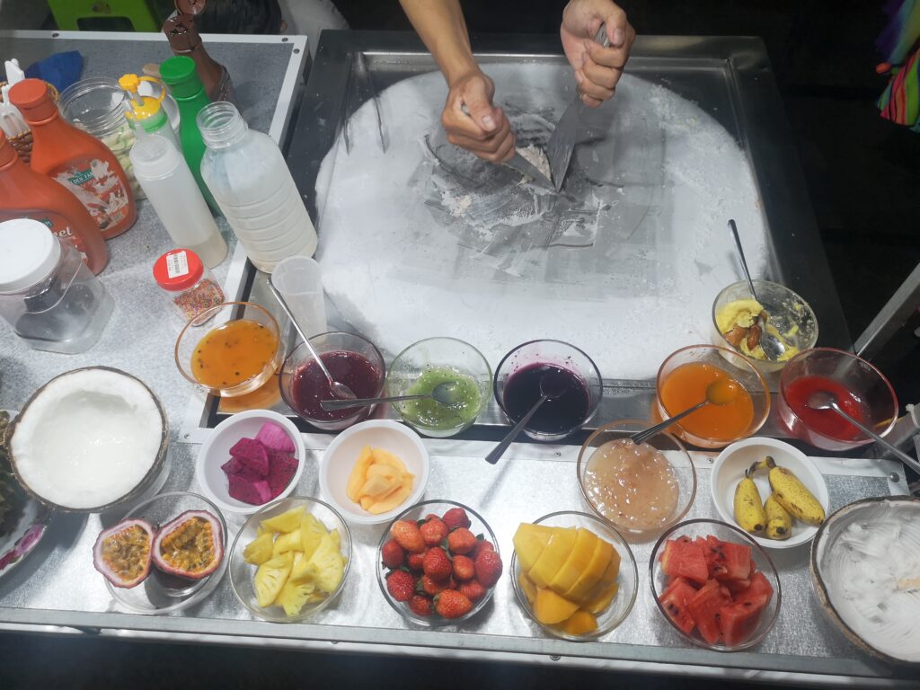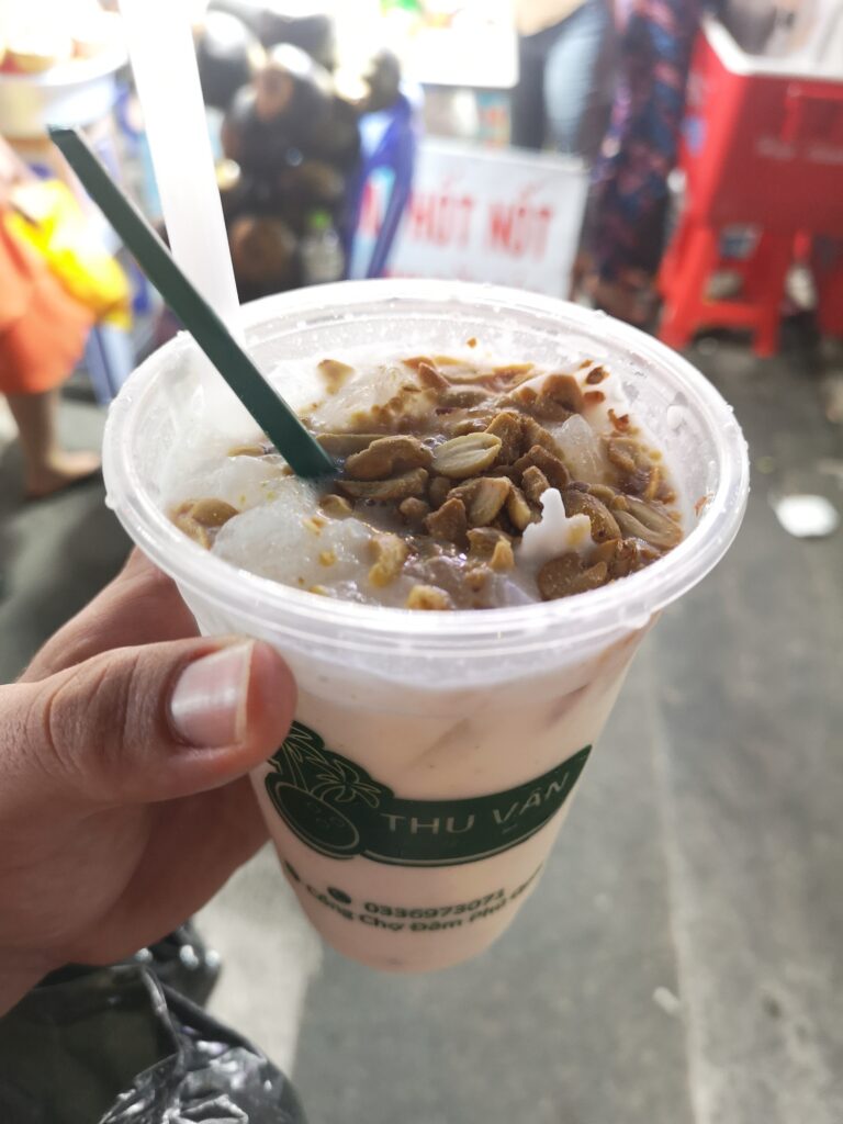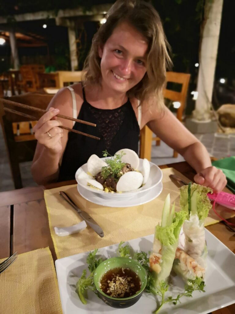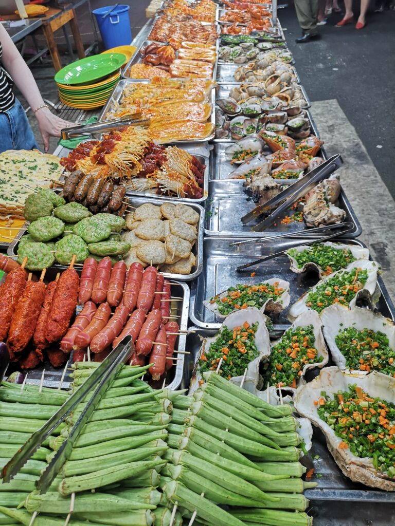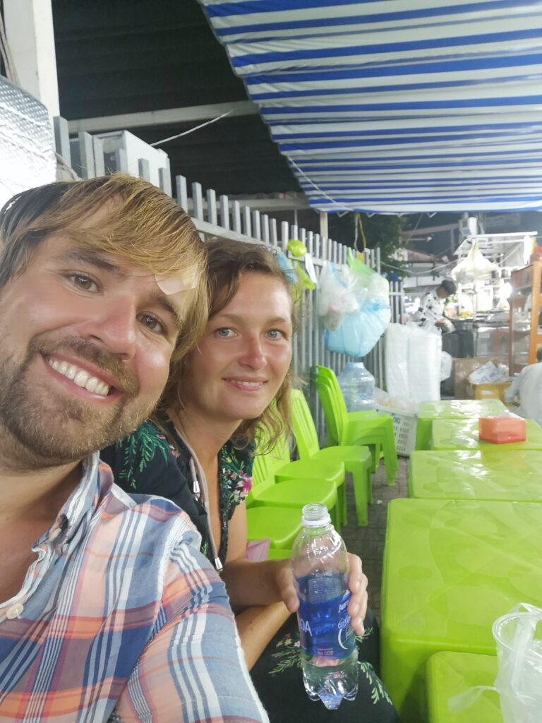 Am nächsten Tag besuchten wir den größten und bekanntesten Nachtmarkt in Phú Quốc. Dort haben wir auf den typischen kleinen Plastikstühlen der verschiedenen Essensstände Platz genommen und uns durch vietnamesisches Streetfood und exotische Früchte probiert. Besonders beliebt in Phú Quốc sind Meeresfrüchte und Jakobsmuscheln. Obwohl ich hier etwas probierfreudiger war als Ronja, wurde auch sie fündig. Ihr Favorit waren gegrillte Okraschoten mit einer besonders leckeren Marinade.