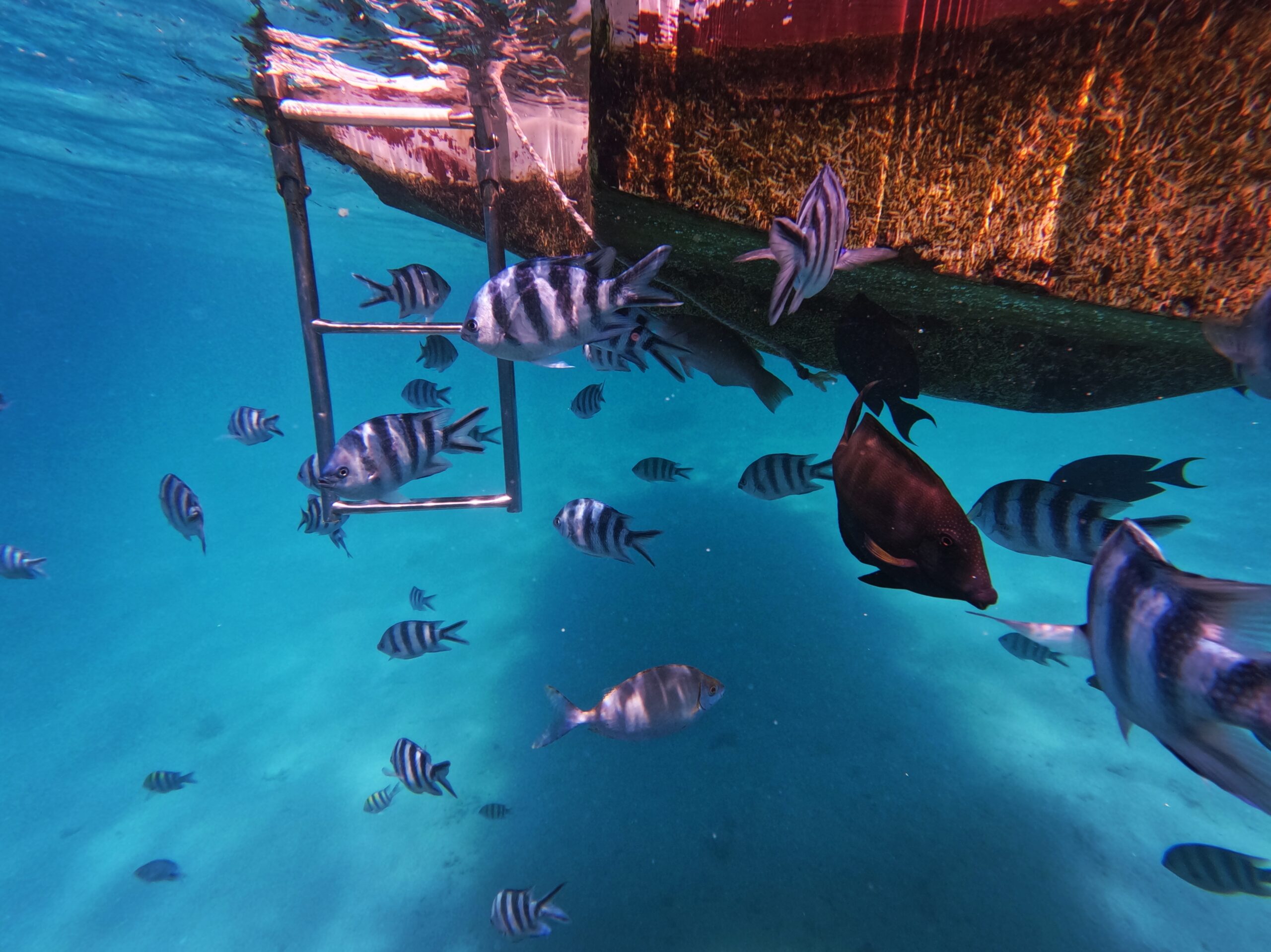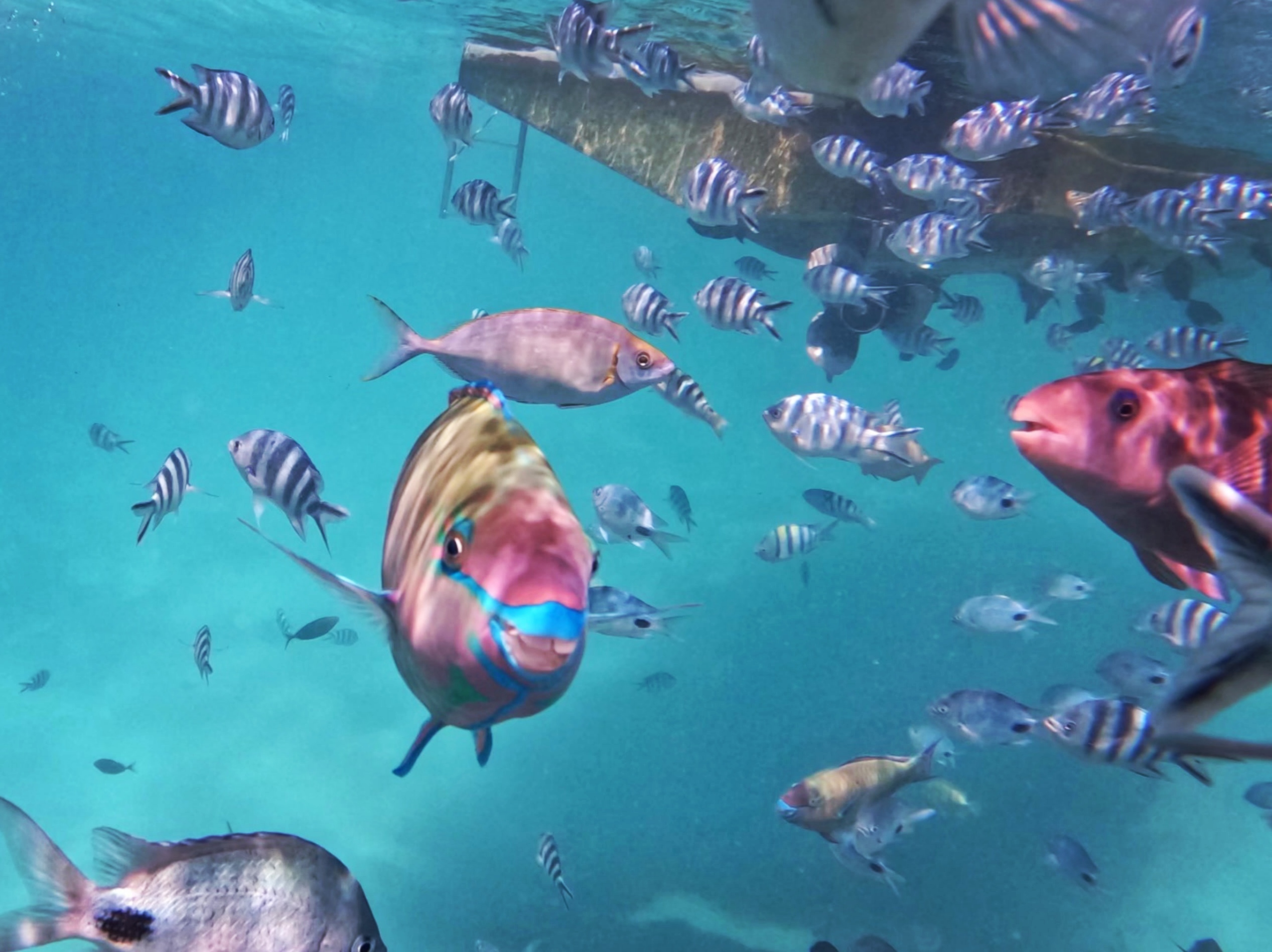 Der Blue Bay Marina Park gilt als bester Schnorchel-Spot auf Mauritius. Da wir nur wenige Tage zuvor in Flic En Flac bereits einen wirklich tollen Schnorchelgang hatten, waren wir gespannt was uns hier erwarten würde. Man muss dazu sagen, dass wir in unseren Urlauben regelmäßig schnorcheln gehen. Bislang hatte es aber weder Hawaii, Bali oder Florida geschafft an unser bisher schönstes Schnorchelerlebnis auf Kanawa Island (in der Nähe von Komodo, Indonesien) heranzukommen. Doch in der Blue Bay bot sich vor uns eine wahre Augenweide der Unterwasserwelt. Riesige Korallenriffe und überall tummelten sich, im kristallklarem Wasser, unzählig viele bunte Fische. Wirklich ein fantastisches Erlebnis!