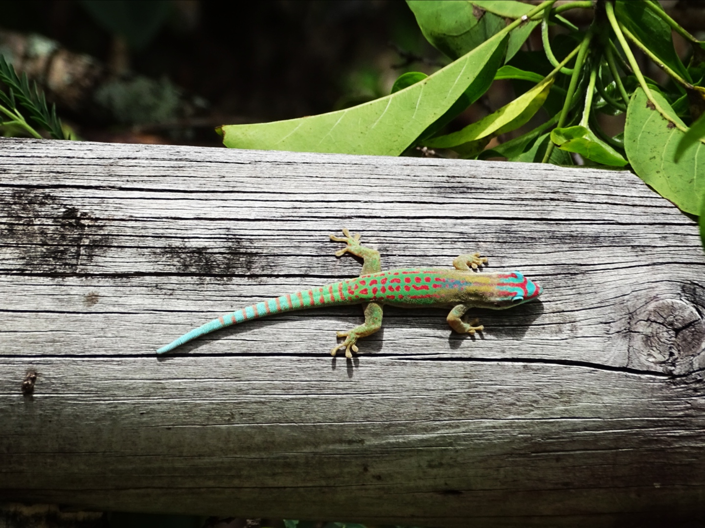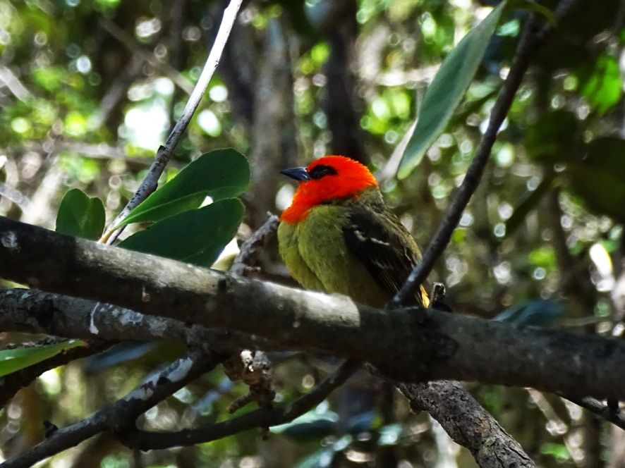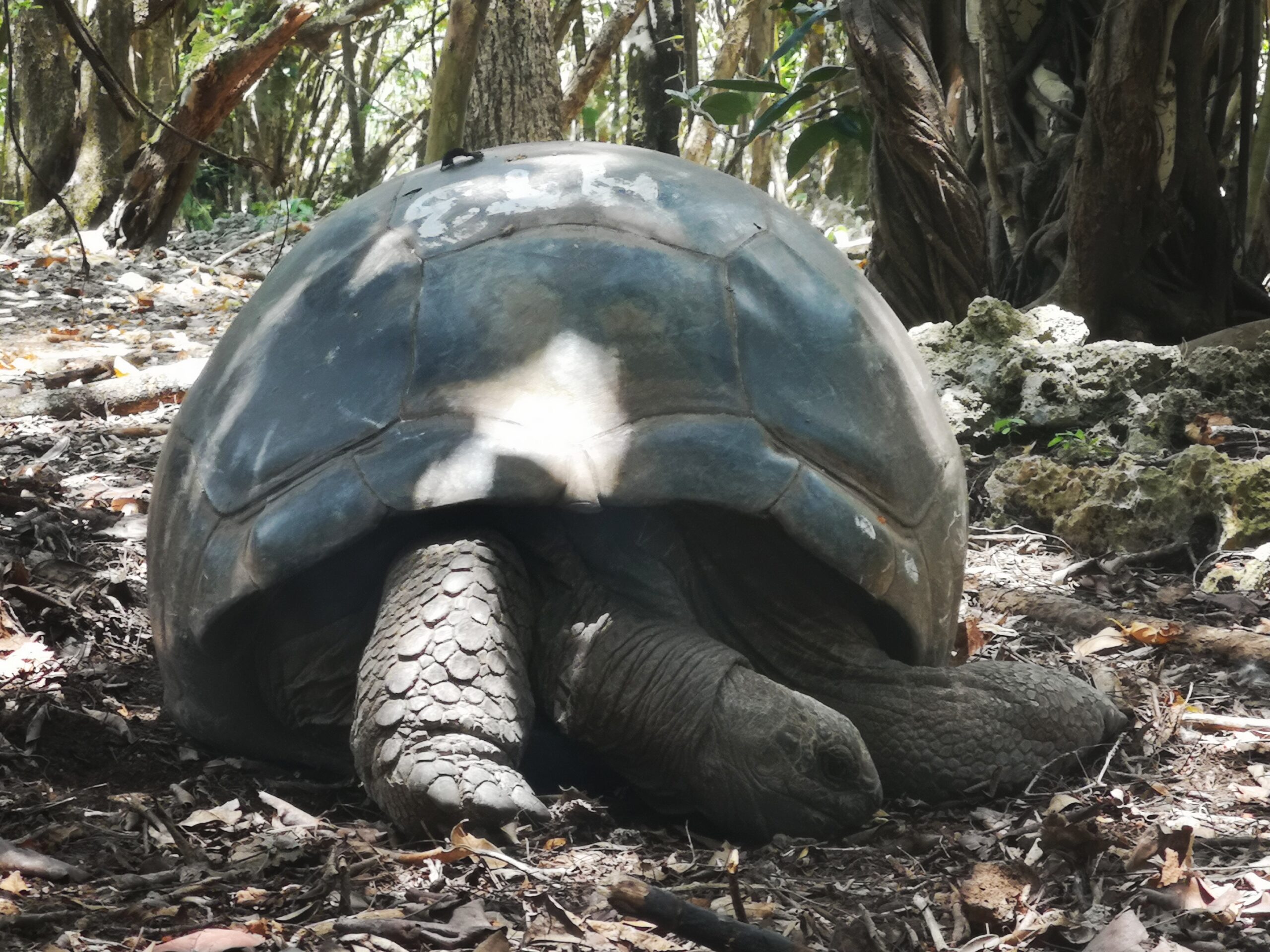 Auch gab es viele bedrohte Tierarten zu sehen. Darunter die Rosentaube und den Mauritiusweber. Bei letzterem ändert das Männchen ausschließlich während der Brunftzeit sein Gefieder und bekommt einen orangefarbenen Kopf. In der restlichen Zeit ist das Männchen nicht von dem Weibchen zu unterscheiden. Wir hatten das Glück ein paar männliche Mauritiusweber während der Brunftzeit zu sichten. Auch die Aldabra-Riesenschildkröte bekamen wir zu sehen. Die Île aux Aigrettes ist übrigens der einzige Ort auf Mauritius, auf welcher die Schildkröten in freier Wildbahn leben.
