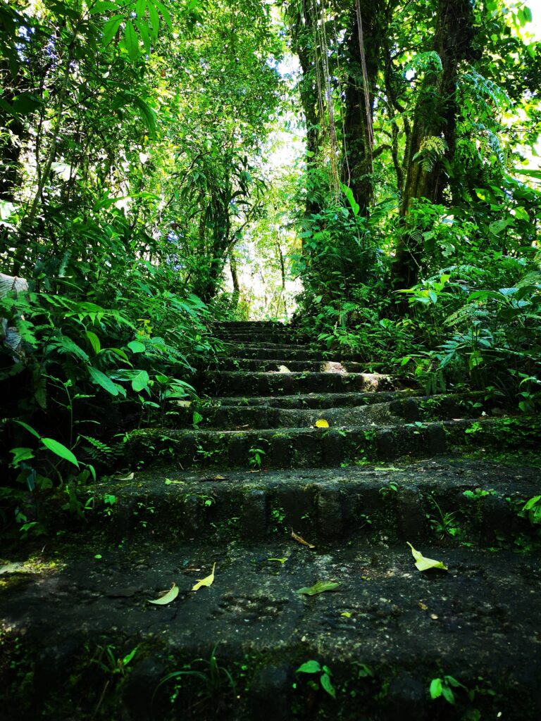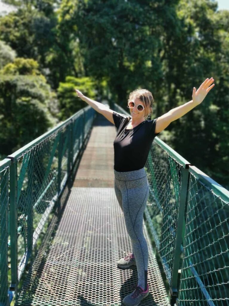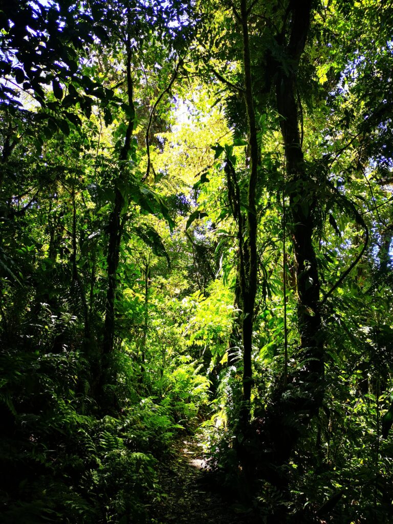 Nach der adrenalinreichen Canopy-Tour ging es für uns mit der ca. 3km langen Baumkronen-Wanderung weiter, die 8 Hängebrücken beinhaltet. Die unterschiedlich hohen Brücken auf dem Rundweg führen teilweise über die Baumkronen hinweg, aber manchmal auch mitten durch die Bäume, auf halber Höhe, hindurch. Durch diese Kombination hat man eine tolle Gelegenheit die verschiedenen Stockwerke des Regenwaldes zu bewundern.