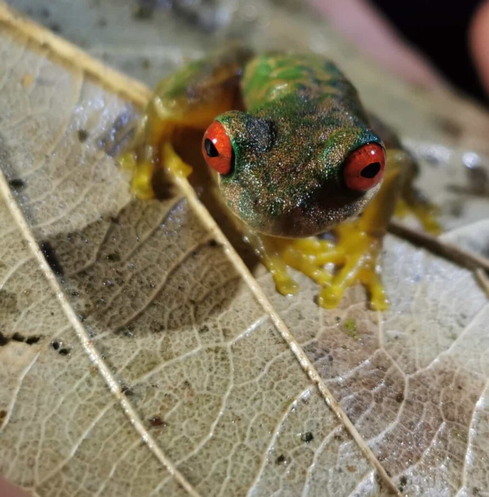 Den Nachmittag verbrachten wir in dem nahegelegenen Dorf „Santa Elena“. Dort sind wir durch die Straßen mit kleinen Läden geschleudert und haben in einem Café noch eine Mahlzeit zu uns genommen, ehe wir in unserer Unterkunft, der „Monteverde Country Lodge“, zurückkehrten. Am Abend entschieden wir uns noch an einer Nachtwanderung teilzunehmen. Hier ging es mit einem Guide wieder in den Wald, um dort ein paar nachtaktive Tiere zu sichten. Wir bekamen unter anderem transparente Schmetterlinge, Skorpione, Taranteln, Gürteltiere, Lemuren, den Red-Eye-Frog und eine Viper-Schlange zu sehen. Nach der Nachtwanderung sind wir völlig erschöpft in unser Bett gefallen, um neue Energie für weiter Abenteuer zu tanken.